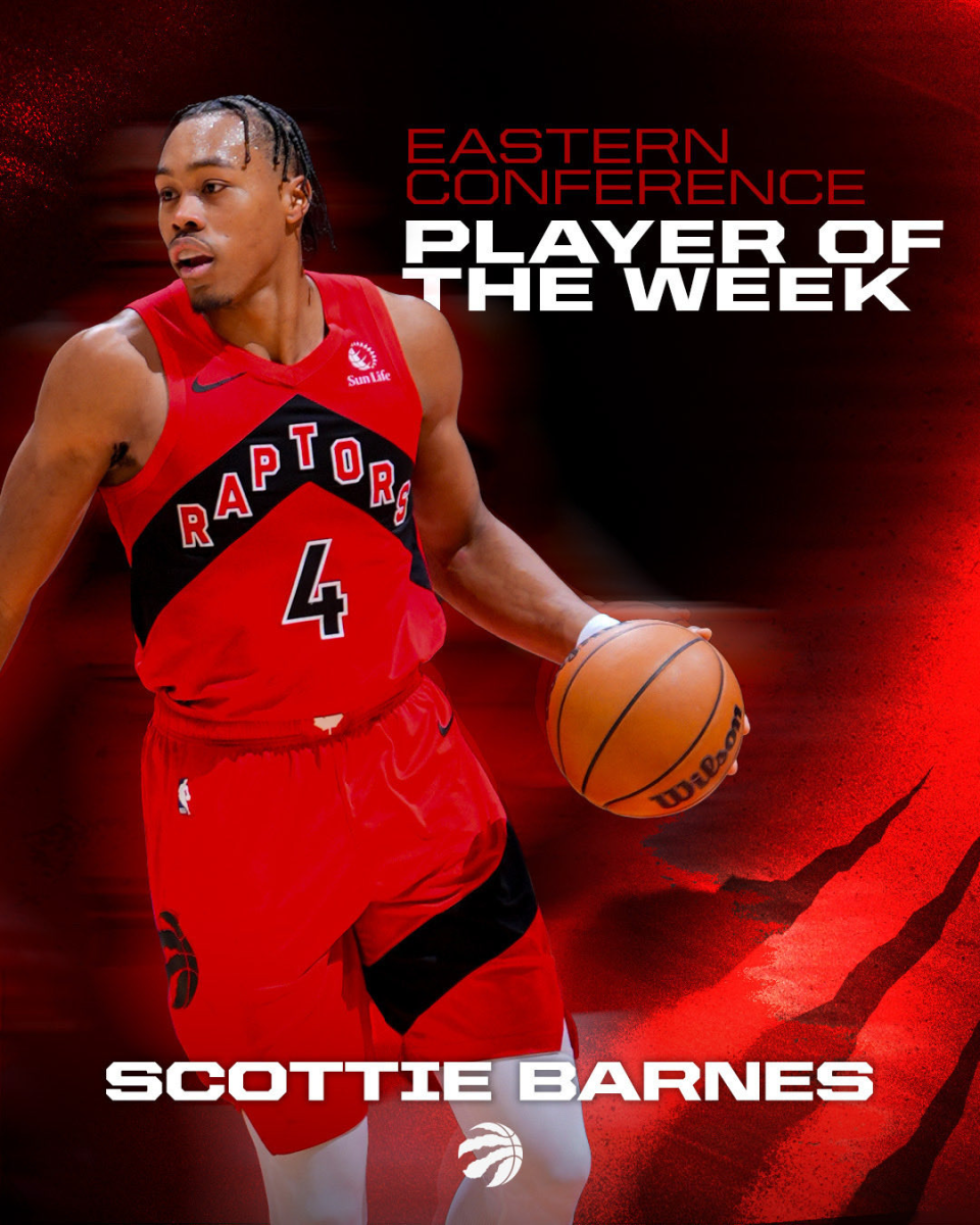 猛龙队上周同样打出3胜1负的表现,巴恩斯场均得到22分、6.3个篮板和6.0次助攻,他出战了其中获胜的3场比赛。
